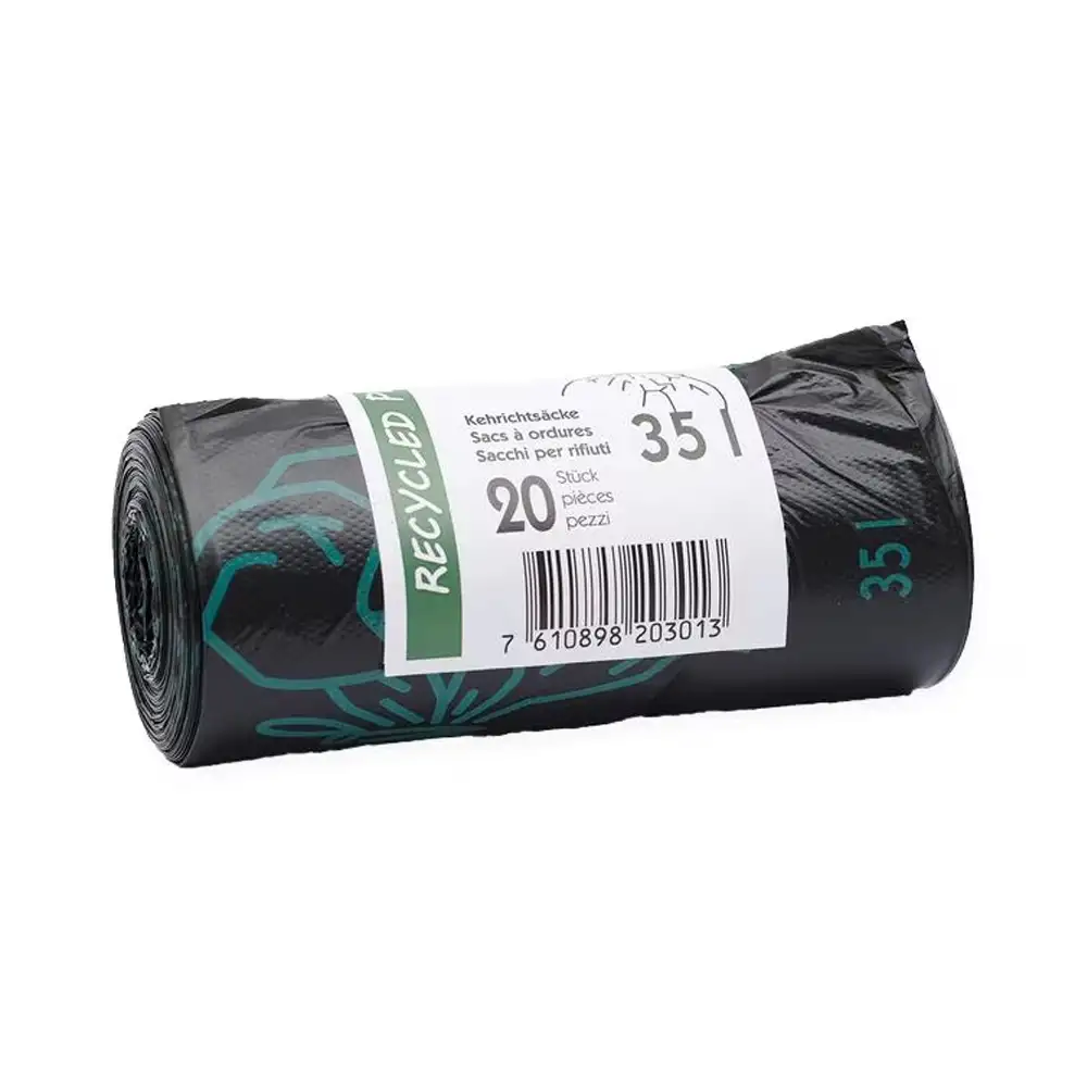 Kehrichtsäcke 35 Liter mit Zugbandverschluss.